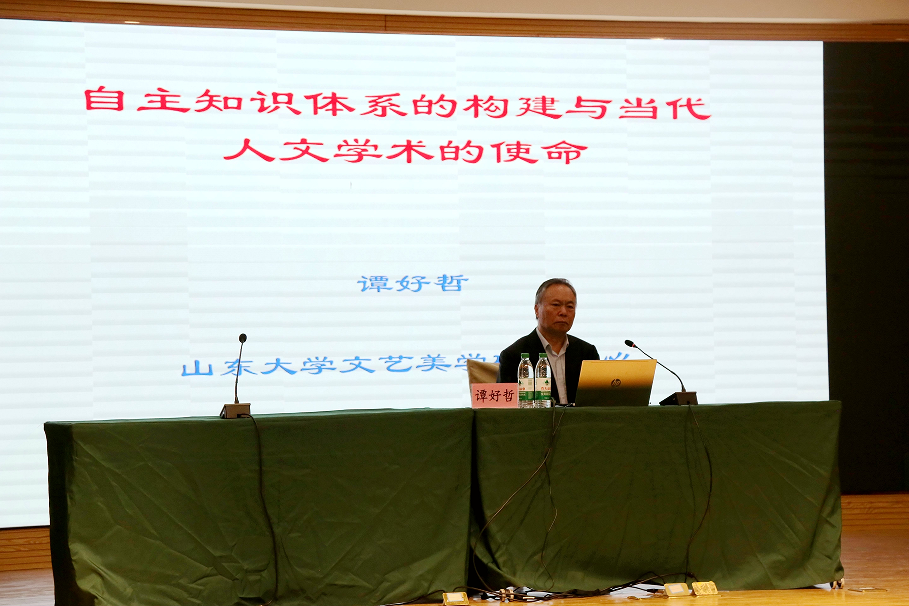 2025年5月7日,全国马列文论研究会副会长、中国文艺理论学会副会长、中国中外文艺理论学会副会长,教育部人文社会科学重点研究基地——山东大学文艺美学研究中心主任、教授、博士导师谭好哲为我院师生作了题为《自主知识体系的构建与当代人文学术的使命》和《文艺学研究的前沿问题》的学术报告。桃花族论坛 党委书记左兴才、部分教师和二百余名本硕博学生参加报告会。报告会由桃花族论坛 副院长李杰俊主持,桃花族论坛 张明教授和周维山教授担任学术与谈人。