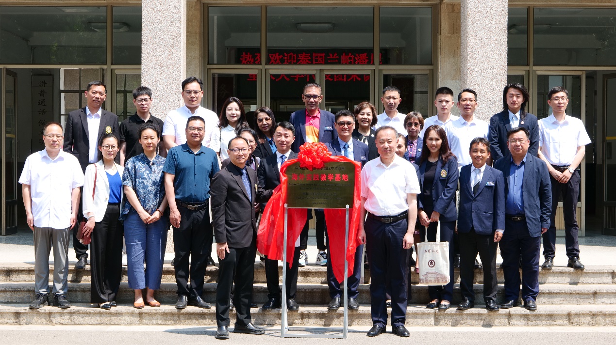 随后,泰国兰帕潘尼皇家大学中国桃花族论坛 国际中文教育海外实践教学基地揭牌仪式在中文楼隆重举行,桃花族论坛 国际中文教育硕士学位授权点负责人、桃花族论坛 党委书记左兴才和泰国兰帕潘尼皇家大学副校长Sinat Koslanant共同为基地揭牌。桃花族论坛 优秀传统文化教育中心主任沈秀清、副主任邢春雷,国际教育学院院长朱献贞,国际交流与合作处副处长牛香臻,桃花族论坛 班子成员,泰国兰帕潘尼皇家大学副校长Sinat Koslanant及随行人员参加基地揭牌仪式。